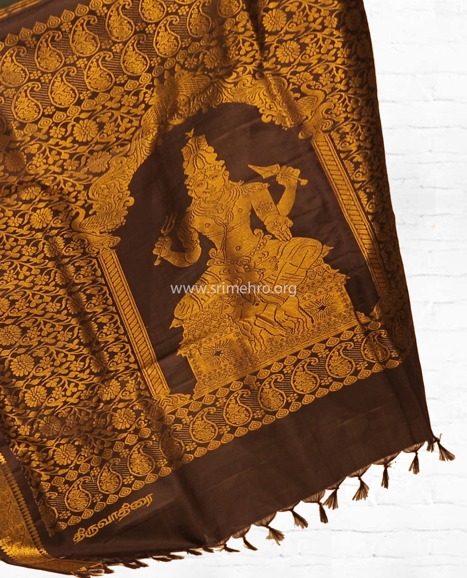 Pallu Also in dark brown colour with an image of Lord Rudhdhiran (or) Shiva. And the symbol of the nakshathiram - Bud of a lotus is also in peedam at right and left sides of the bottom portion