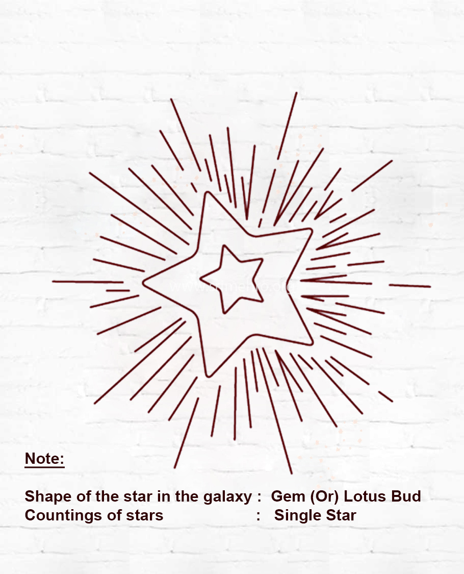 | Shape of the star in the galaxy | : | Gem (Or) Lotus Bud |